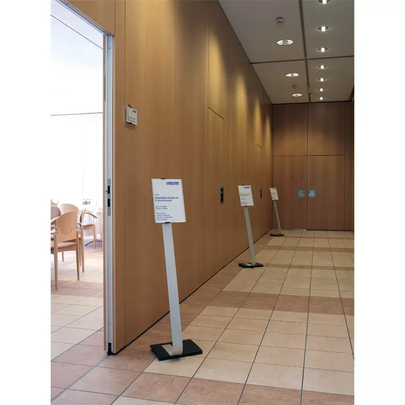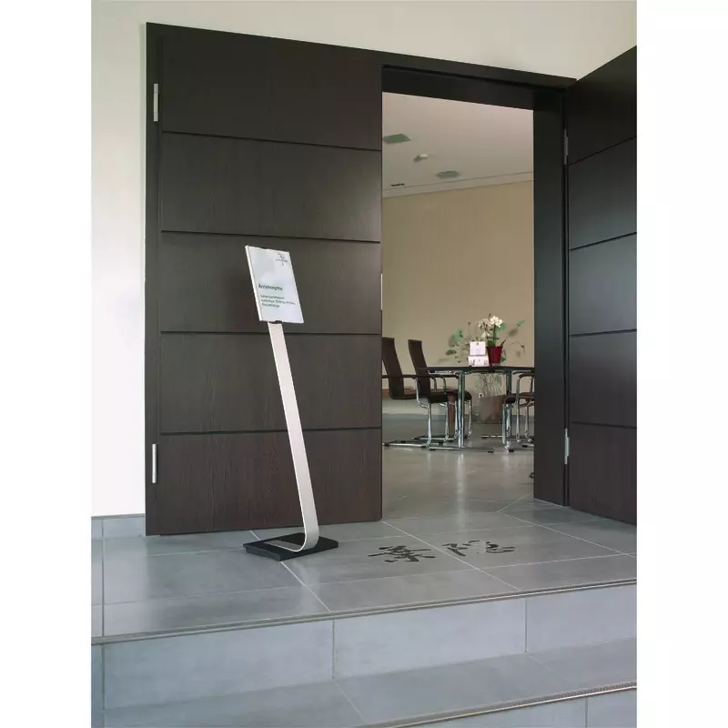 Bodenständer in klassischer Optik mit stabilem Alurahmen im DIN-A4-Format für Informationen oder als Wegweiser.