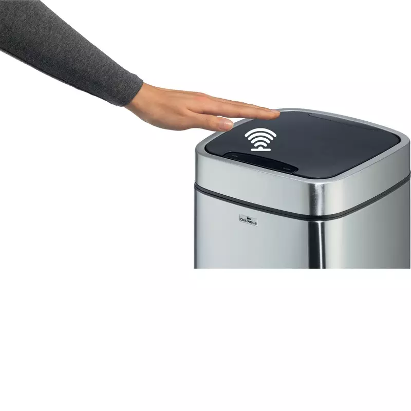 Ideal selbst bei strengen Hygieneregeln. Mit einer einfachen Handbewegung über dem Sensor öffnet sich automatisch der Deckel des Abfalleimers. Das Schließen erfolgt automatisch nach 5 Sekunden, was durch die Displayanzeige verdeutlicht wird.