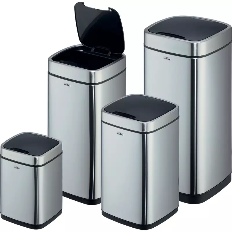 Der komfortable Abfallbehälter mit Sensortechnik ermöglicht die kontaktlose Abfallentsorgung in einem geschlossenem Behälter.