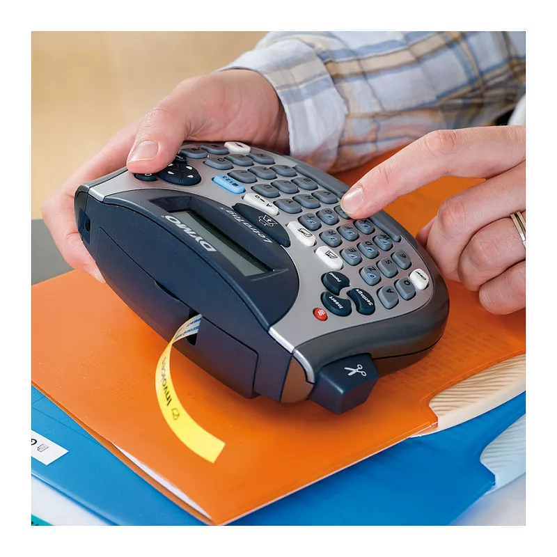 LetraTag-Beschriftungsgerät. Aufkleberfarbe: Schwarz auf gelb,