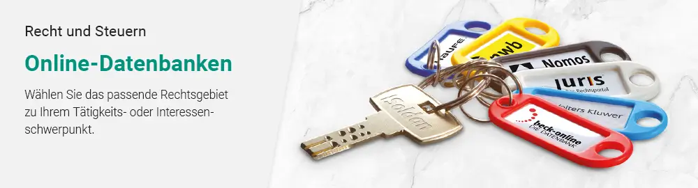 Online-Datenbanken sind für Juristen und Steuerberater inzwischen ein unverzichtbares Arbeitsmittel. Alle Fachverlage bieten umfassende Lösungen an. Wählen Sie Ihr Rechtsgebiet aus: