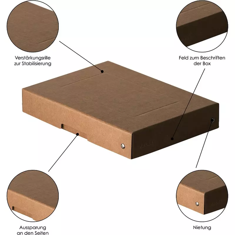 Archivieren leicht gemacht! Stabile Aufbewahrungsboxen aus veredelter Buchbinderpappe.