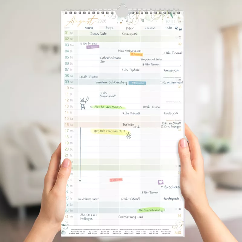 Stundenpläne für alle Familienmitglieder, eine Jahresvorschau für