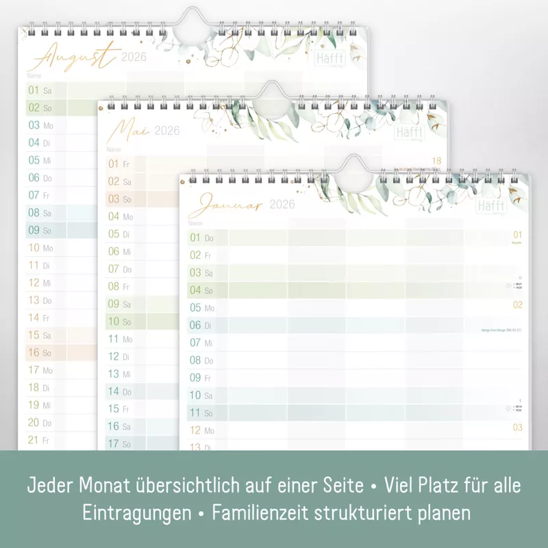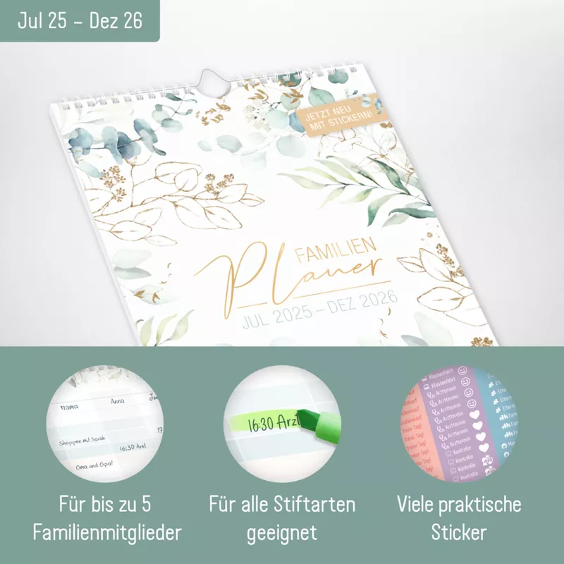 Der Familienplaner Blattgold 2025/26 ist ein übersichtlicher