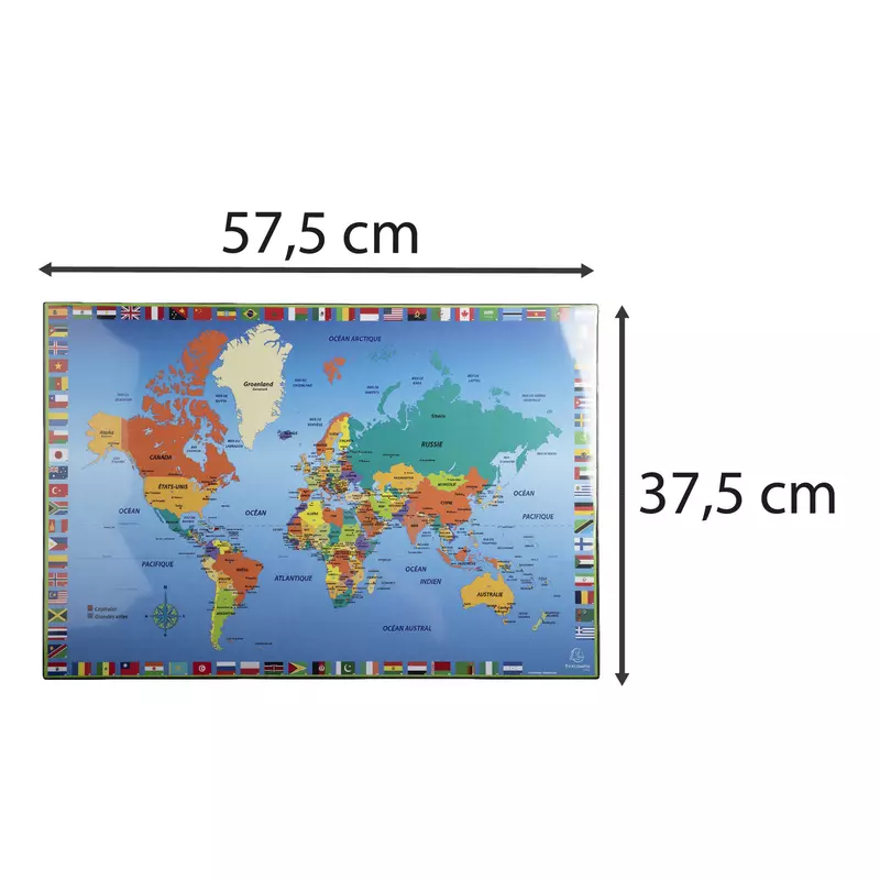 Feste Schreibtischunterlage, PVC, Weltkarte, 37,5x57,5 cm Die feste