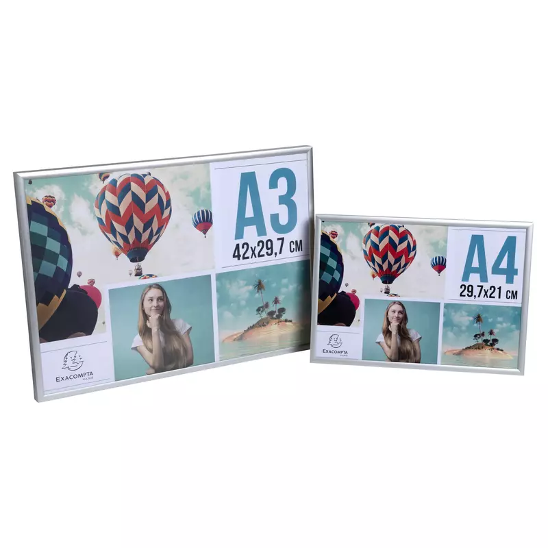 Fotorahmen A4 aus Aluminium, Exacryl Der Exacompta-Fotorahmen ist ideal, um Ihre persönlichen und professionellen Fotos, Flyer o.ä. zu präsentieren. Dank der hochwertigen Ausführung und sehr hohen Transparenz kommt Ihr Bildmaterial sehr gut zur Geltung. Dünne Aluminiumränder, die das Foto kaum verdecken. Der Rahmen kann auf einem Tisch oder Schreibtisch aufgestellt oder über die dafür vorgesehenen Befestigungen horizontal oder vertikal an die Wand gehängt werden. Er ist UV-beständig und vergilbt nicht. Mit KREAMAN auf www.exacompta.com können Sie den Rahmen ganz einfach personalisieren.