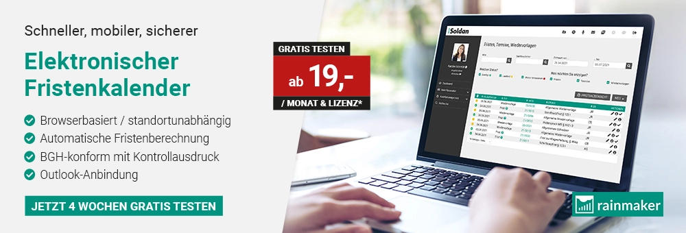Sie erhalten das Soldan Fristenmanagement schon ab 19 € / Monat & Lizenz im Abo.
