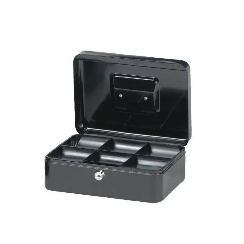 Geldkassette, 250 x 90 x 191 mm, lackierter Stahl, nahtlos gezogen, schwarz