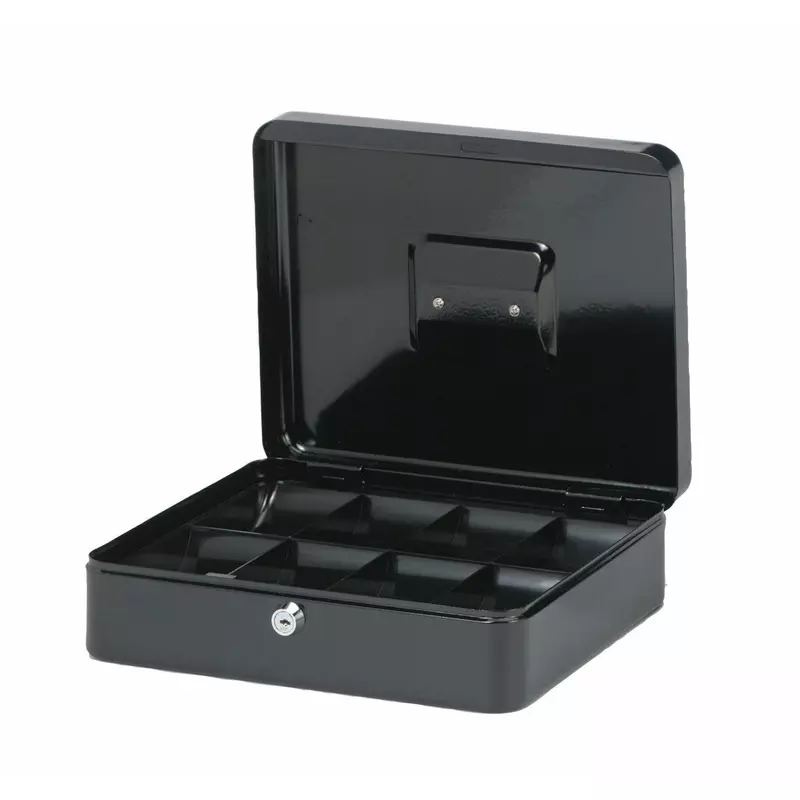 Geldkassette, 300 x 90 x 245 mm, lackierter Stahl, nahtlos gezogen, schwarz