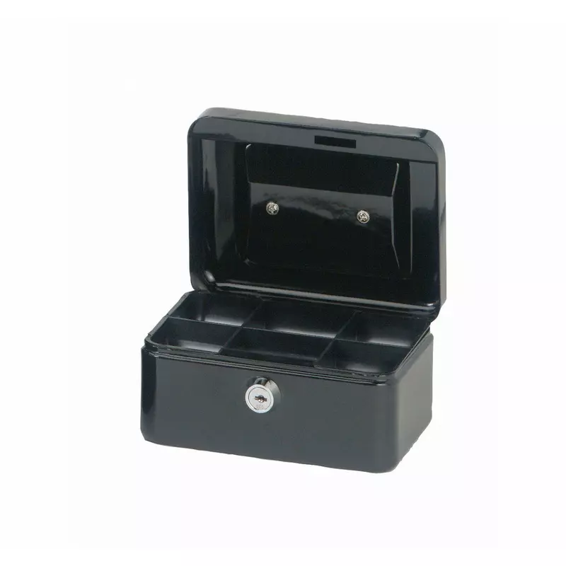 Geldkassette, 153 x 81 x 125 mm, lackierter Stahl, nahtlos gezogen, schwarz