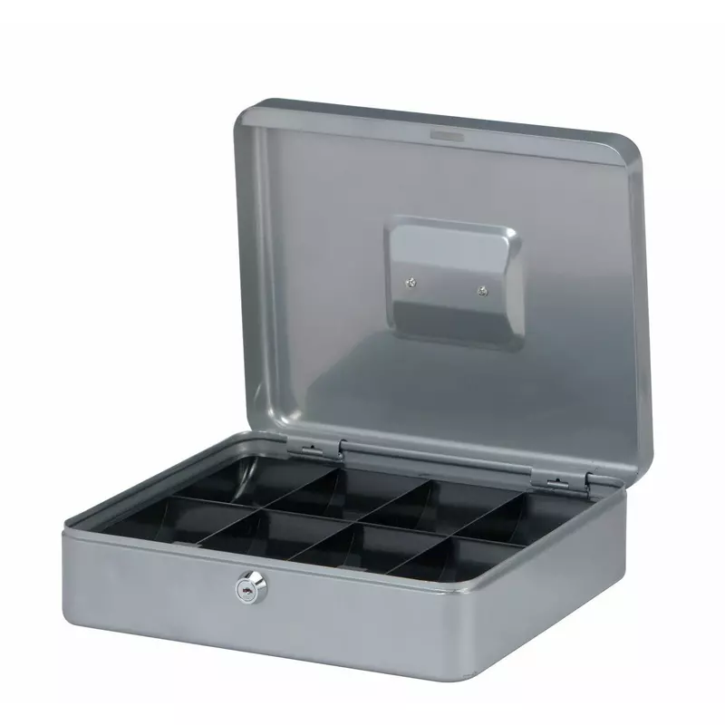 Geldkassette, 300 x 90 x 245 mm, lackierter Stahl, nahtlos gezogen, silber