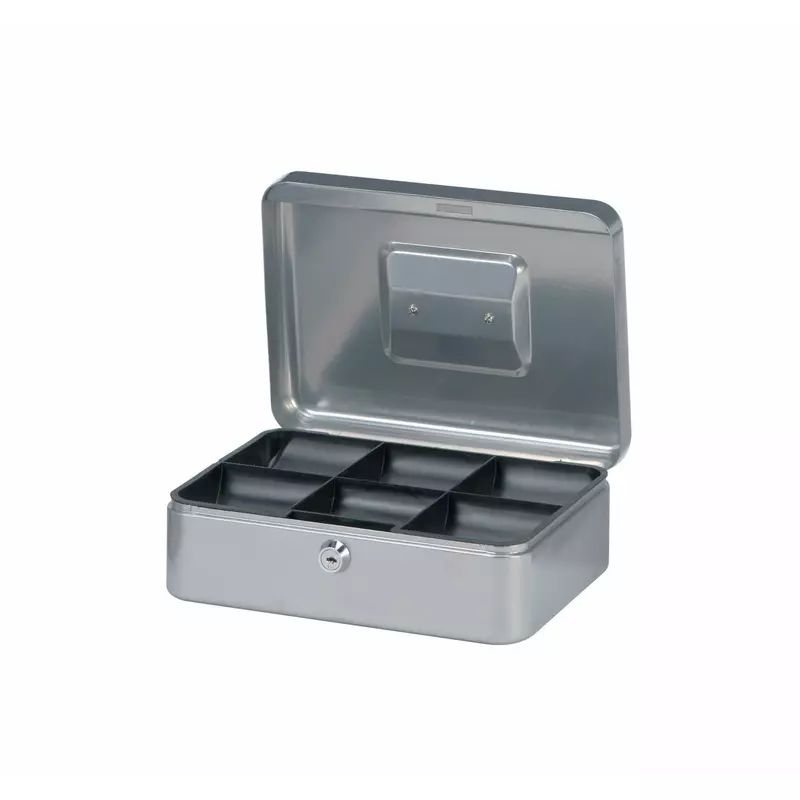 Geldkassette, 250 x 90 x 191 mm, lackierter Stahl, nahtlos gezogen, silber