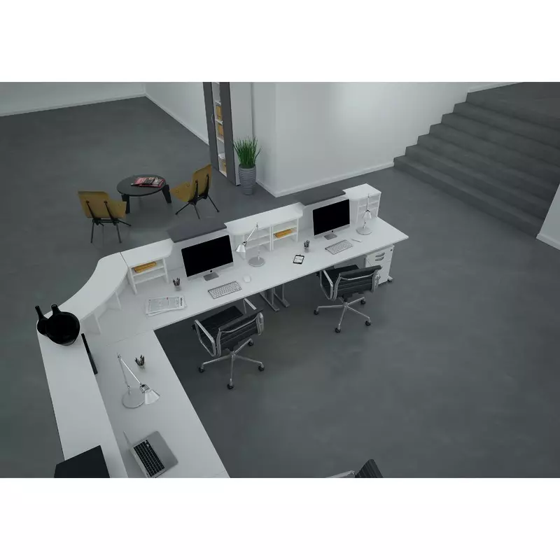 Funktional und doch ansprechend. Diese Empfangstheke sorgt für einen bleibenden Eindruck, auch nach dem zweiten Hinsehen.