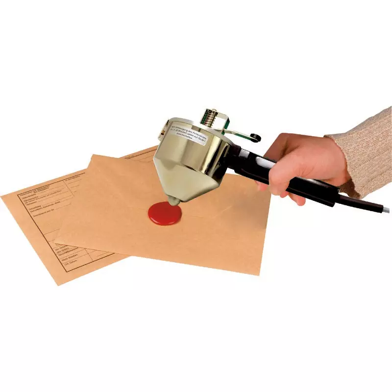 Elektrisches Siegelgerät für serienweises Siegeln mit Perlen-Siegellack.