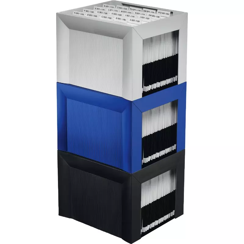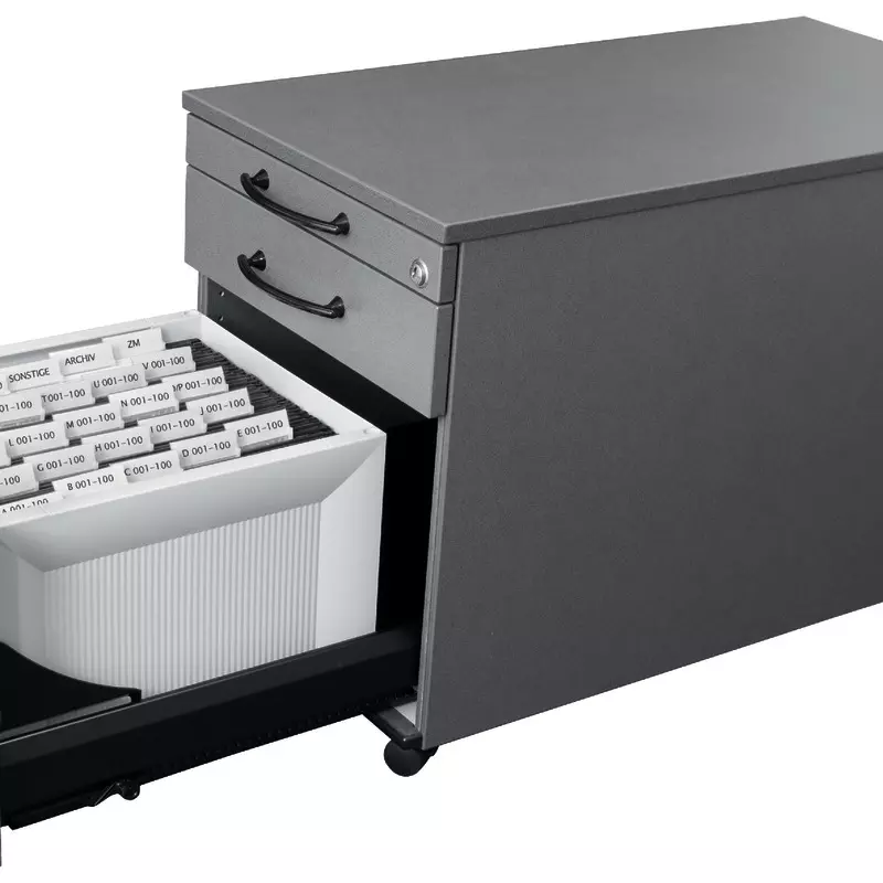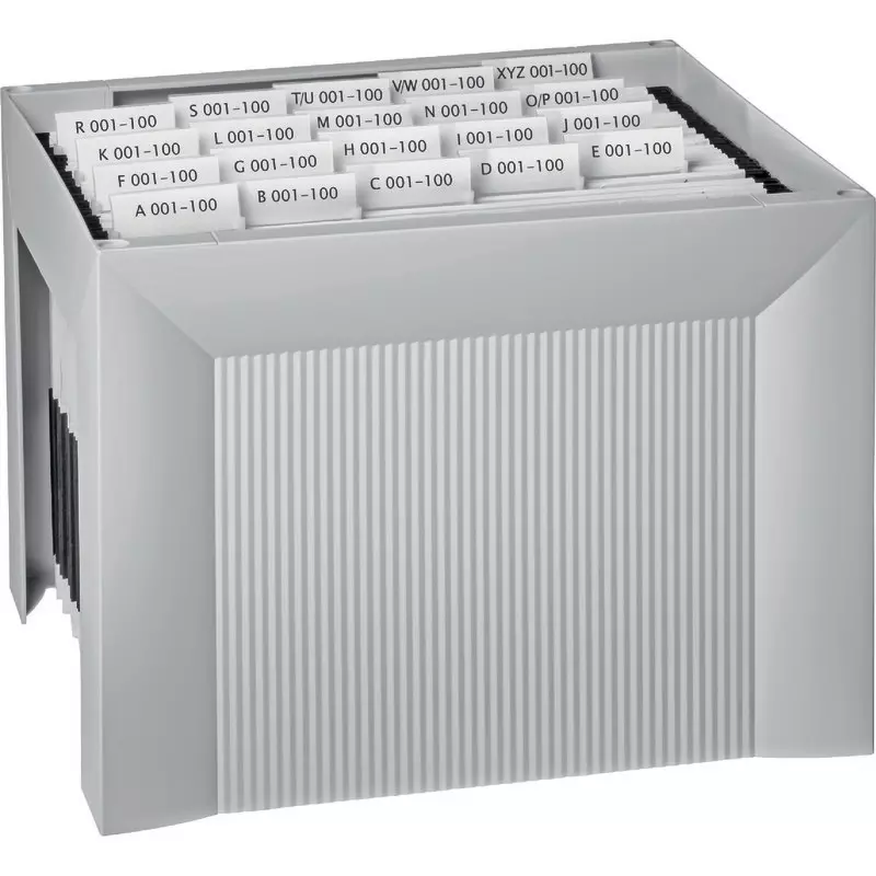 Stabile Kunststoffbox für bis zu 35 Hängemappen für den schnellen Zugriff auf täglich benötigte Unterlagen. Ideal für den Schreibtisch, in Containern oder Schränken.