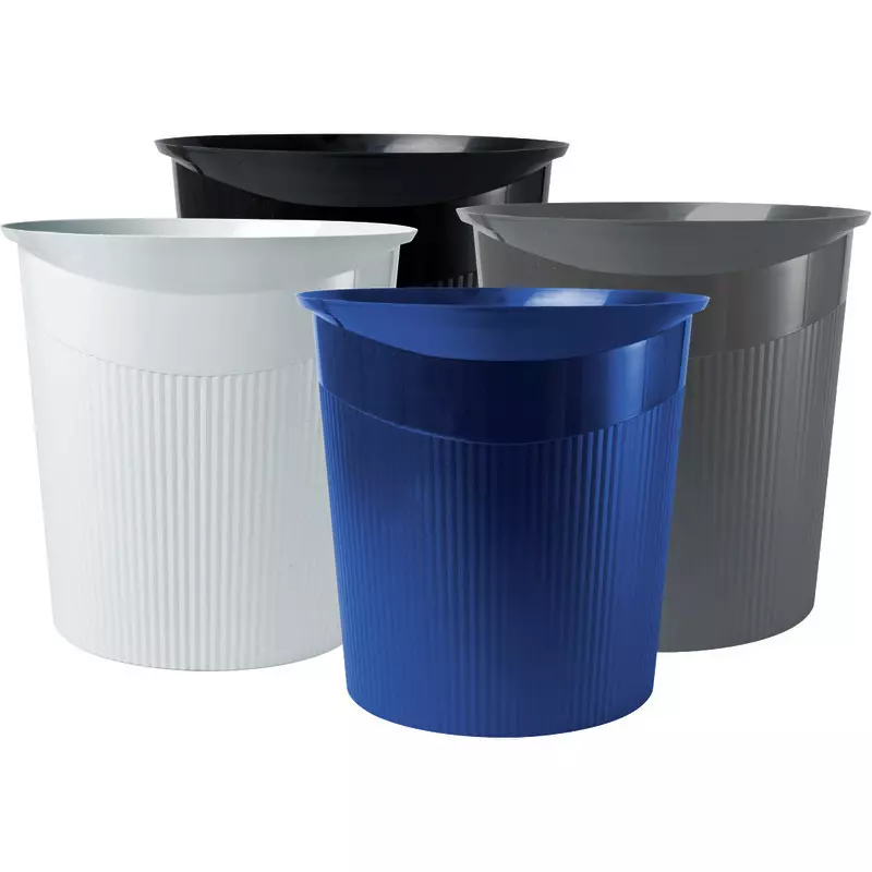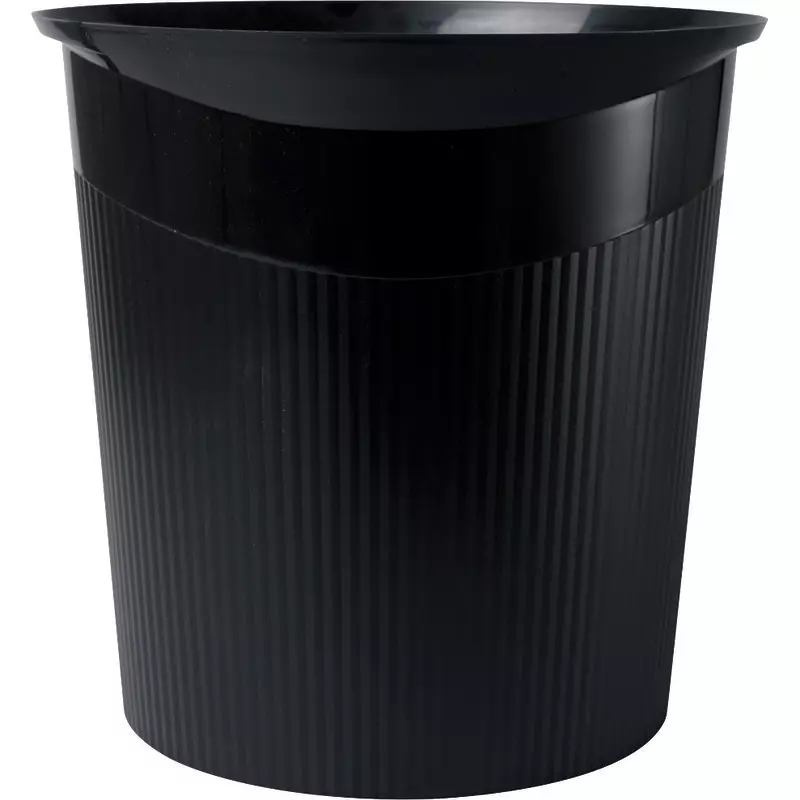 Moderner Papierkorb mit bis zu 13 Liter Fassungsvermögen. Die strukturierte Außenoberfläche gilt als unempfindlich und strapazierfähig.