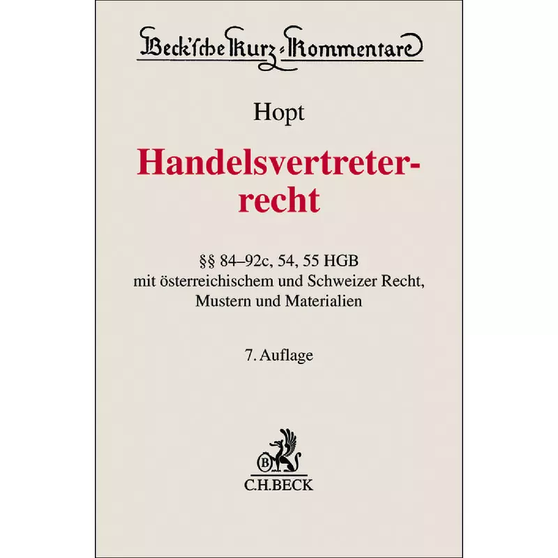 Dieser bewährte Kurz-Kommentar wendet sich an drei Gruppen: Erstens an alle Handelsvertreter einschließlich der Versicherungs- und Bausparkassenvertreter sowie Vertragshändler und Eigenhändler, für die weitgehend Handelsvertreterrecht gilt; zweitens an Kaufleute und andere Unternehmer, die beim Vertrieb Handelsvertreter oder Vertragshändler einsetzen; drittens an gewerbliche Kunden und Verbraucher, die sich fallweise informieren müssen.