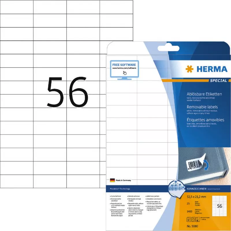 Produktinformationen "HERMA Etikett 5080, B x H: 52,5 x 21,2 mm, weiß, ablösbar"
