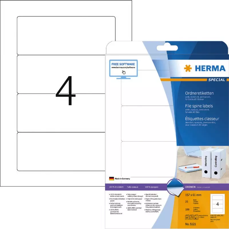 Produktinformationen "HERMA Etikett 5121, B x H: 157 x 61 mm, A5 Ordner weiß"
