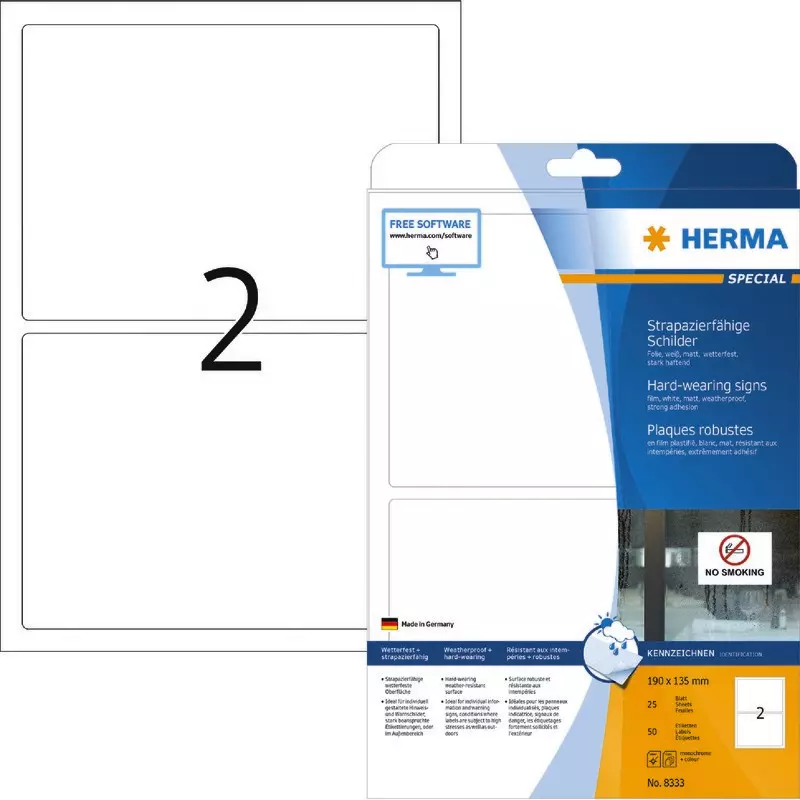 Produktinformationen "HERMA Etiketten 8333 Schilder B x H: 190 x 135 mm, Folie weiß"