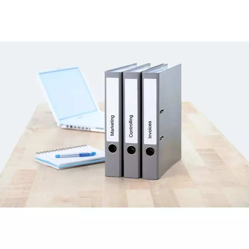 Zeit sparen mit perfekter Beschriftung. Selbstklebende Ordneretiketten auf A4-Blättern passend für alle gängigen Ordner. Geeignet für Laserdrucker, Inkjetdrucker und Kopierer.