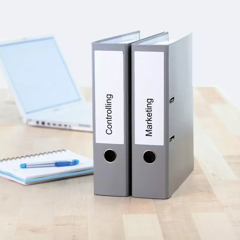 Ordneretiketten auf DIN A4-Blättern, selbstklebend. Für ein einheitliches Erscheinungsbild im Büro und Zuhause. Für alle gängigen Ordner geeignet.