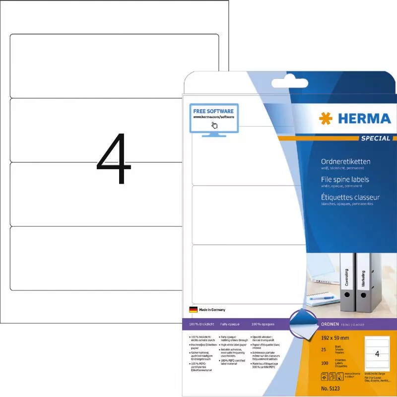 - Absolut blickdichtes Material mit hohem Weißgrad, alte Ordnerbeschriftungen scheinen nicht durch.
