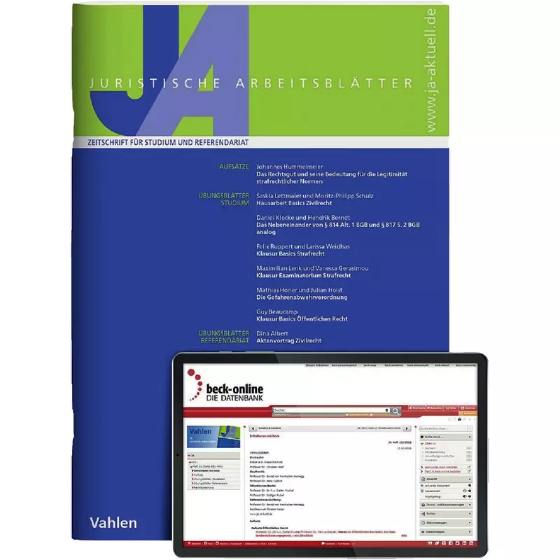 Die JA bietet Ihnen alles, was Sie zum erfolgreichen Jurastudium brauchen: Zivilrecht, Strafrecht, Öffentliches Recht – die JA deckt den kompletten Stoff für das Erste und Zweite Staatsexamen ab. Die JA macht da weiter, wo Lehrbücher aufhören. Sie finden vernetzte Beiträge, die beispielsweise die Schnittstellen zwischen Erb- und Familienrecht oder Handels- und Gesellschaftsrecht behandeln.