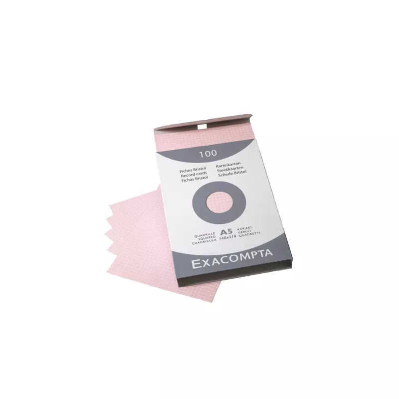 Karteikarten A5 kariert, Faltschachtel mit 100 Stück - Rosa