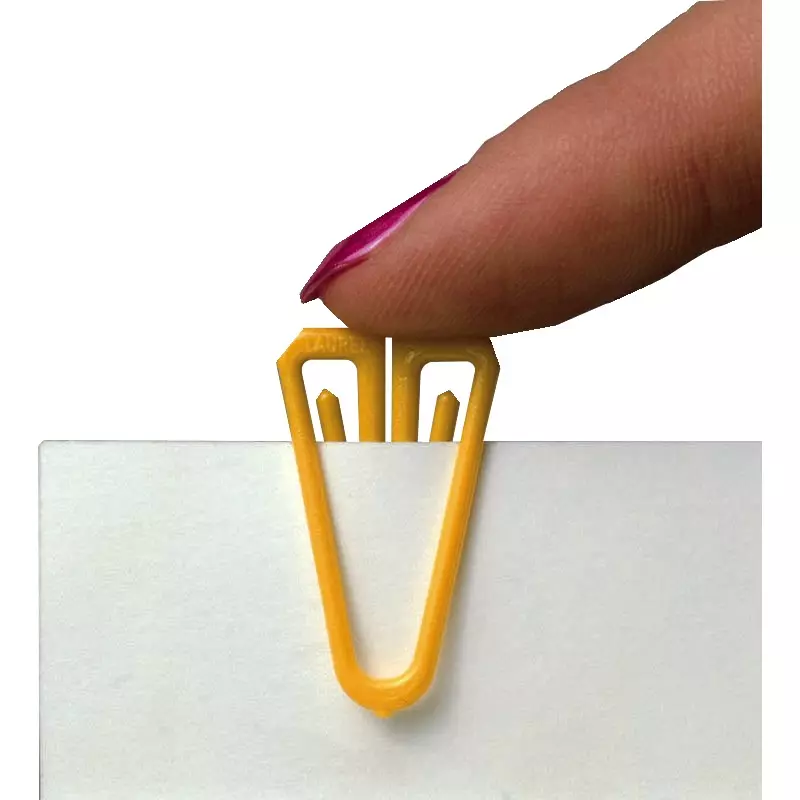 Der LaurelClip ist die erste asymmetrische Büroklammer aus Polystyrol, die durch seine Form 2 Blatt genauso stark hält wie 25 Blatt.