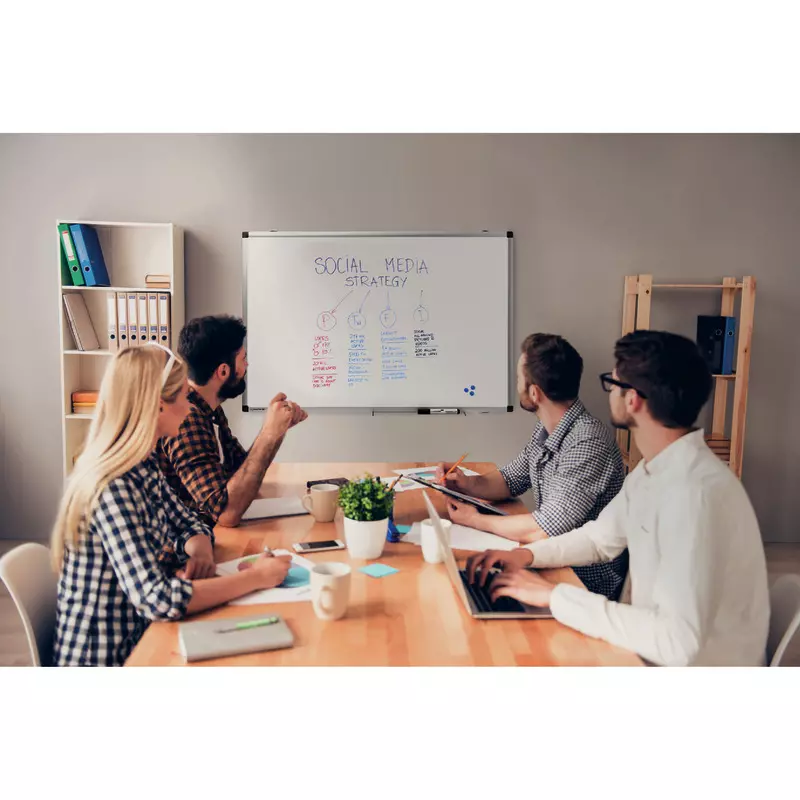 Die Tafel überzeugt nicht nur mit ihrer beeindruckenden Größe, sondern auch mit vielen praktischen Eigenschaften. Die magnetische Oberfläche ermöglicht das einfache Anbringen von Notizen, Skizzen und Fotos.