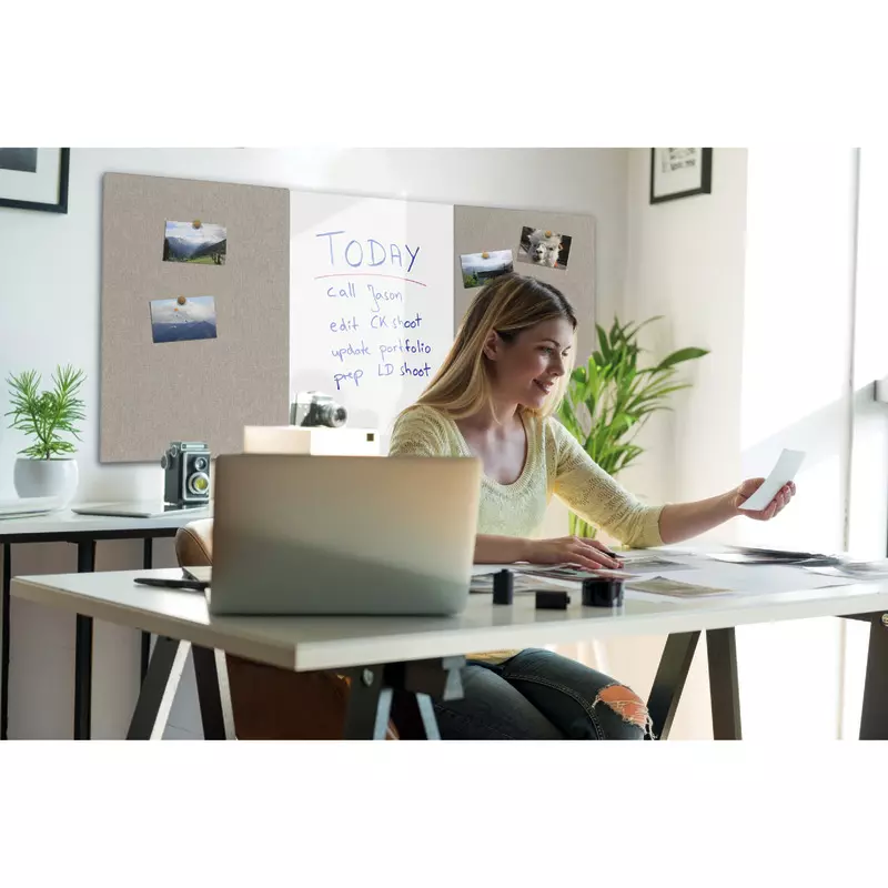 Durch unser robustes Whiteboard ist ein hervorragendes Beschreiben gewährleistet und es ist zugleich jederzeit trocken abwischbar. Ob Brainstormings, Ideenskizzen oder Projektergebnisse – das richtige Whiteboard bereichert die Teamarbeit.