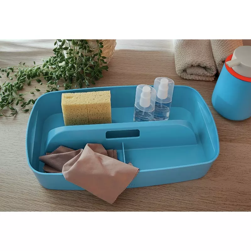 Aufbewahrungsbox mit Organiser und Deckel für DIN A5-Dokumente und kleinere Büro- oder Home-Accessoires.