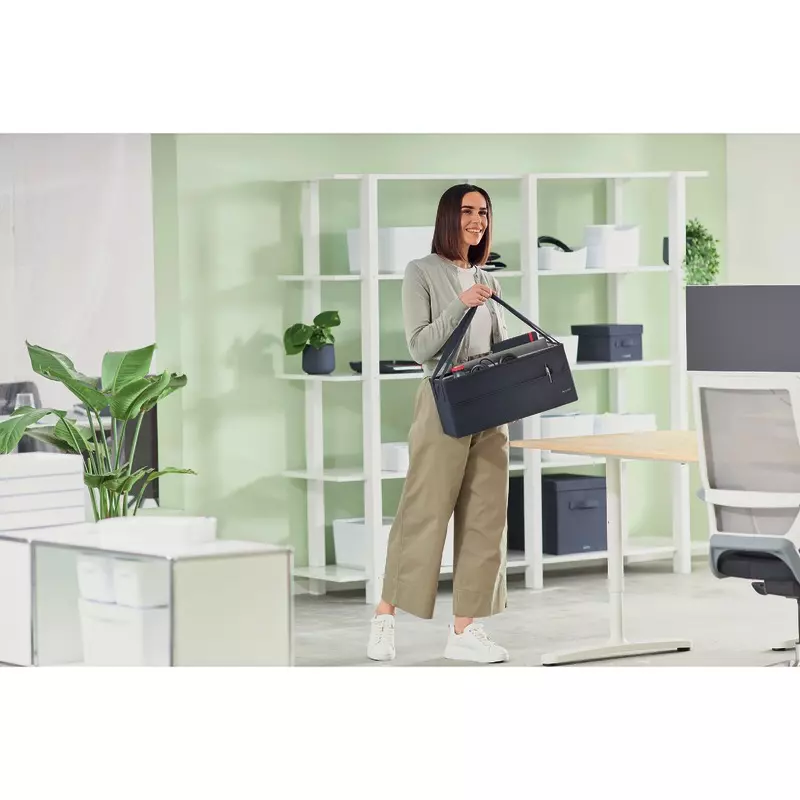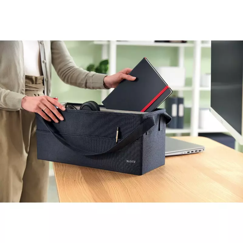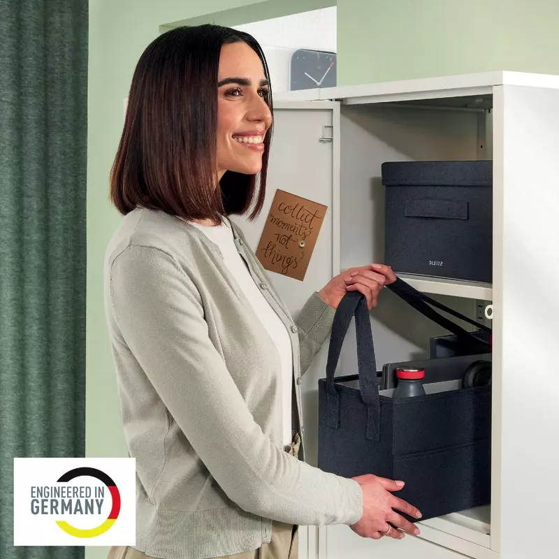 Flexibler Begleiter beim Desk-Sharing. Faltbare Aufbewahrungstasche aus Stoff, ideal für das Büro und zu Hause. Passend für Standard-Schließfächer und Lockerschränke. Mobiles Arbeiten leicht gemacht.