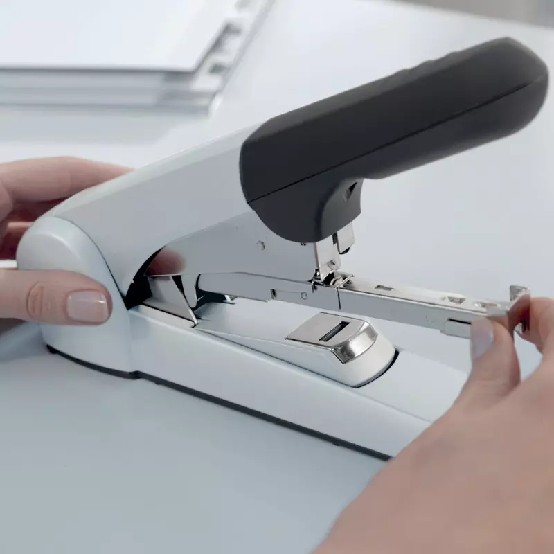 Das Heftgerät benötigt nur eine Heftklammerngröße, ob Sie nur 2 Blatt oder einen ganzen Stapel heften. Sie müssen die Klammern nicht mehr wechseln. Der rutschfeste Überzug am Griff, sowie das Heftklammermagazin mit Springlademechanik machen diesen Hefter besonders komfortabel. Die solide Mechanik (Metall mit Kunststoffgehäuse) hält viele Jahre.