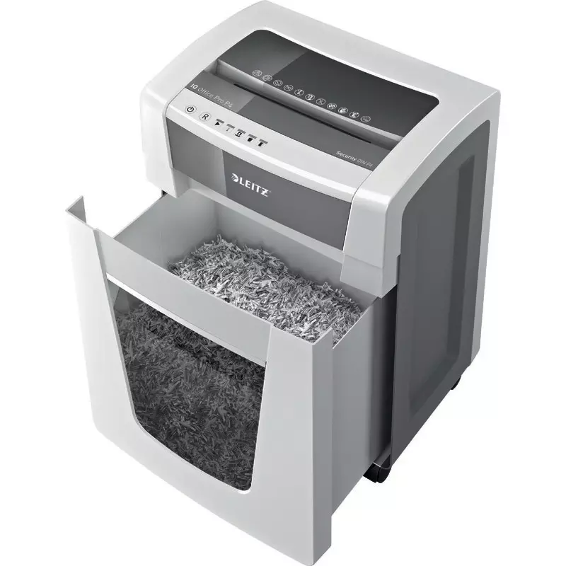 Der Leitz IQ Office Pro Sicherheitsstufe P4 ist nicht nur äußerst schick, sondern arbeitet auch extrem leise, sodass er selbst in größeren Büros nicht stört. Er kann 4 Stunden im Dauerbetrieb eingesetzt werden und ist dank Touch Control und Anti-Papierstau-Technologie leicht zu bedienen.