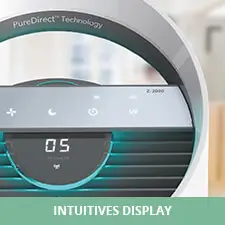 Bei den meisten Luftreinigern kann es passieren, dass Bereiche im Innenraum entweder eine geringe oder keine Luftzirkulation aufweisen oder sogar unerreicht bleiben, weil die Luft nur senkrecht oder geradeaus verteilt wird. Die proprietäre Leitz TruSens PureDirect Technologie hingegen verwendet zwei separate Luftströmungen, um den gesamten Raum abzudecken und um unerreichte Bereiche zu minimieren.