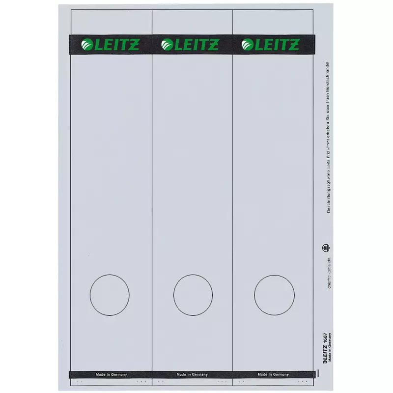 Produktinformationen "LEITZ Rückenschilder 1687 für Laserdrucker, selbstklebend, für Rückenbreite 80 mm, 61 x 285 mm"