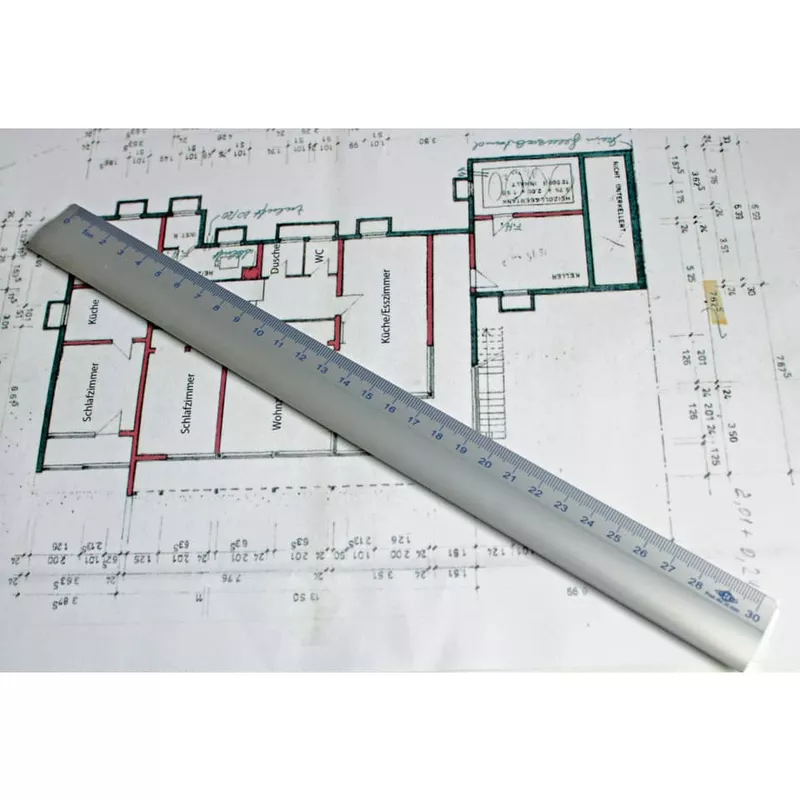 WEDO Aluminium-Lineal 30 cm. Flache Form, rückseitig mit