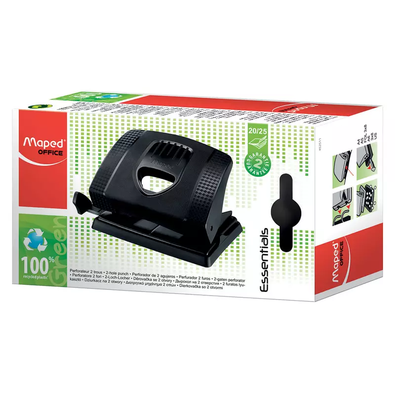 Locher Essentials Green, 9% recycelter Kunststoff/Metall, 25 Blatt, schwarz
