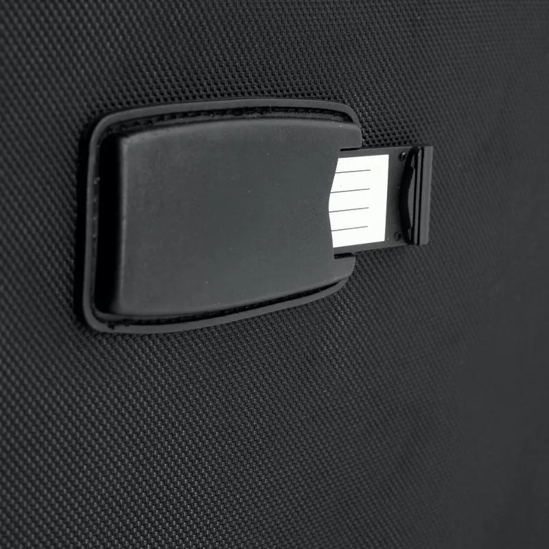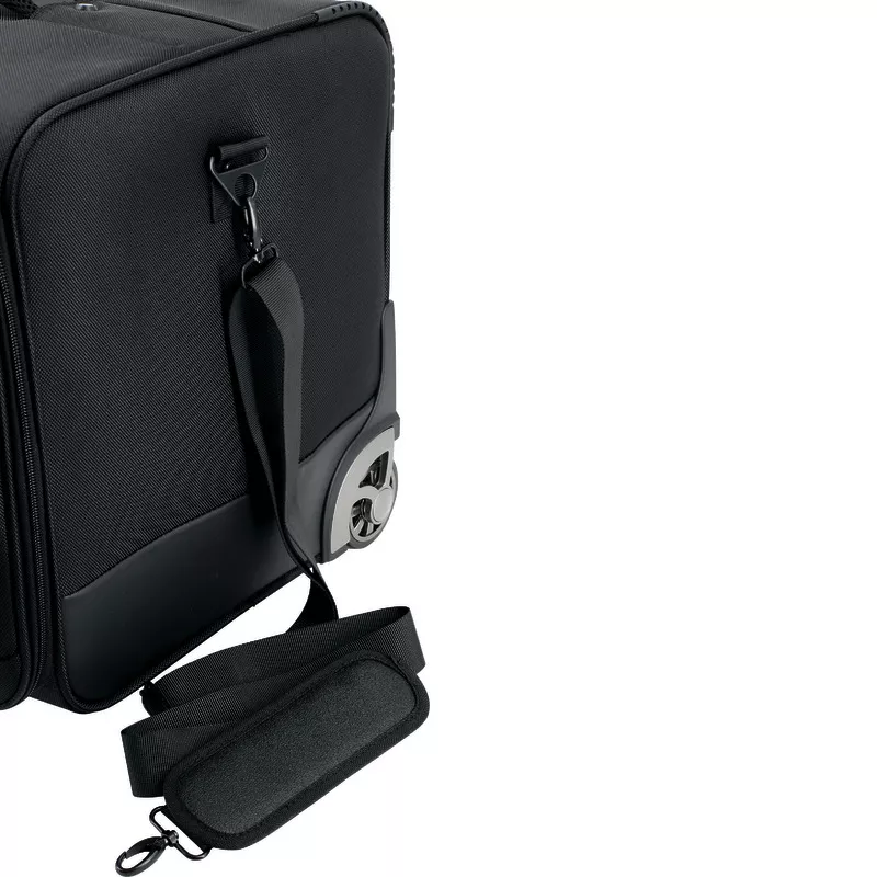 Der Koffer verfügt neben dem extra großen Hauptfach über ein Dokumentenfach mit Organizer und zwei weitere Vortaschen für Kabel und Accessoires.