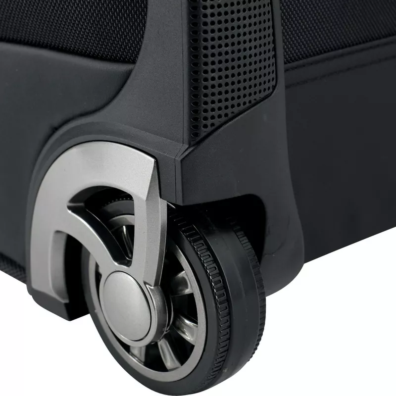 Das arretierbare und vollständig versenkbare Trolley-System, sowie stabilen XL-Rollen sorgen für einen bequemen Transport auf langen Wegen.