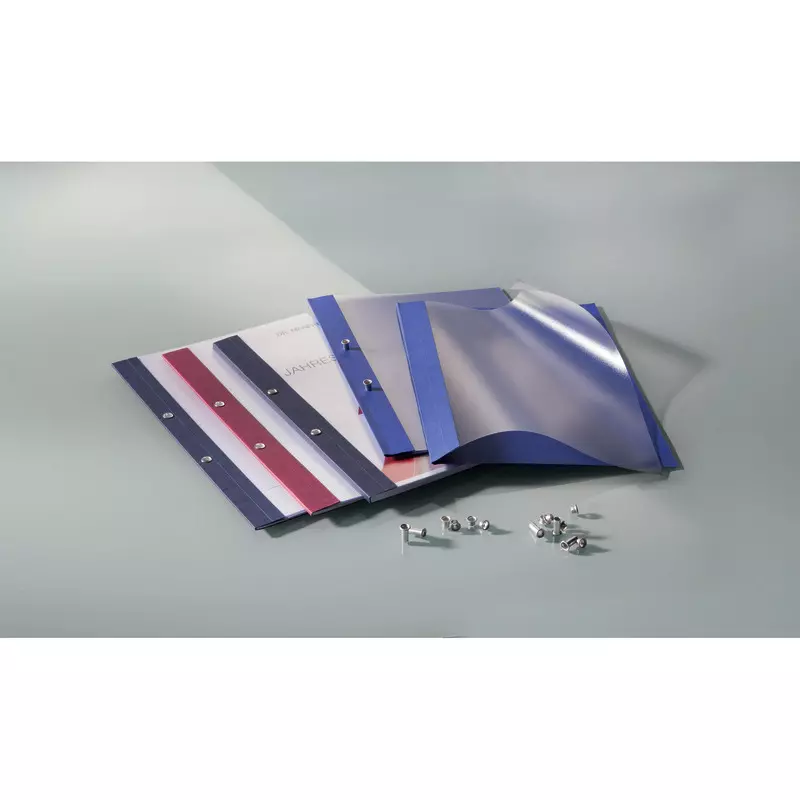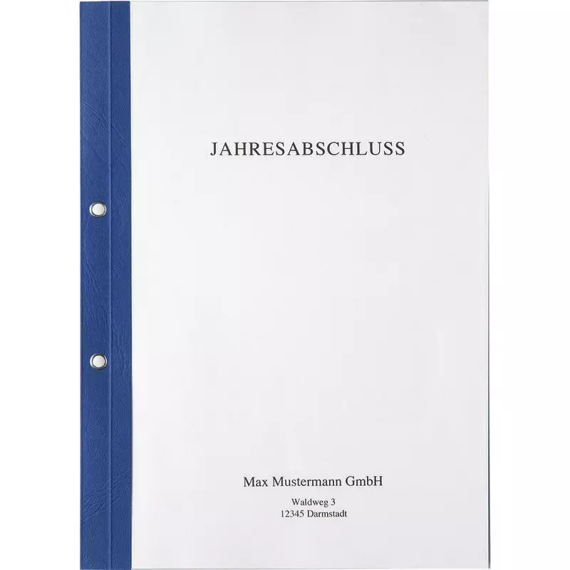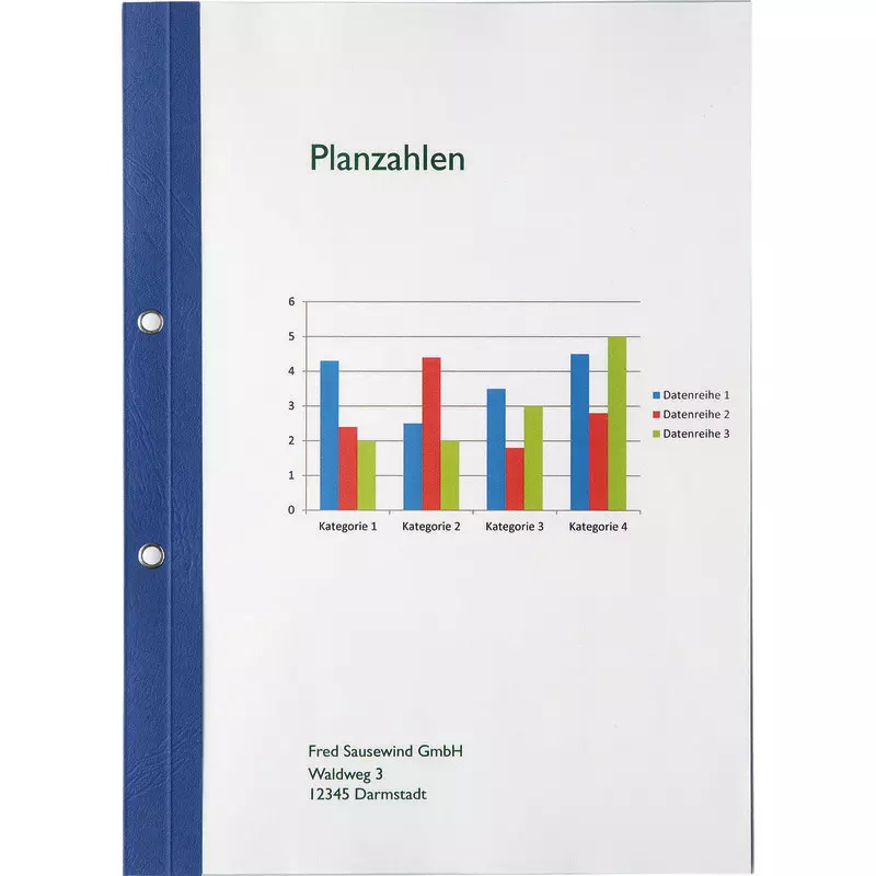 | Produkttypbezeichnung: | Ösen-Bindemappen mit transparentem Vorderdeckel, Lederstruktur, Rückenstärke 1,5 mm |