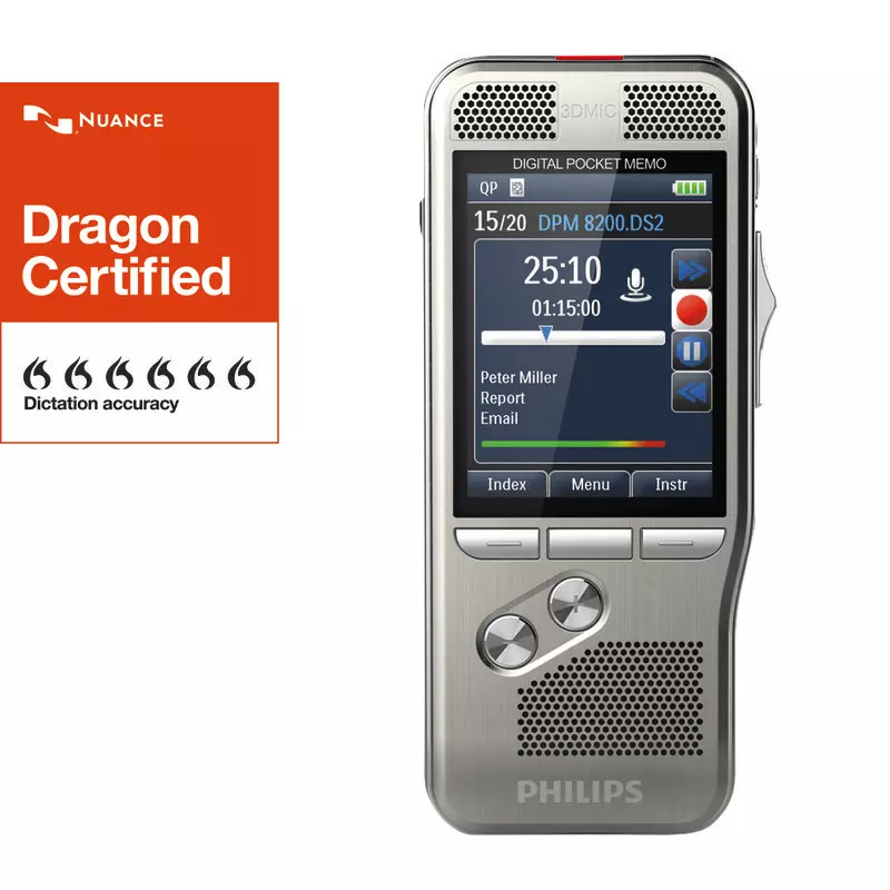 Die Materialien und technischen Bauteile für das Gerät wurden mit großer Sorgfalt ausgewählt um eine exzellente Produktqualität zu erreichen. Eine der beeindruckendsten Eigenschaften ist die bahnbrechende 3D-Mikrofontechnik mit integriertem Bewegungssensor, die in allen Situationen die besten Aufnahmeresultate liefert. Aufnahme und Wiedergabe im Digital Speech Standard (DSS Pro), als MP3 oder PCM.