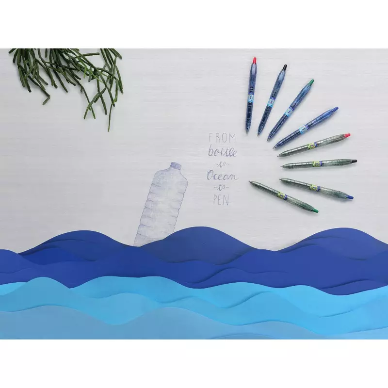 Besteht zu 86 % aus recyceltem Material (exkl. Verbrauchsmaterial), zumeist aus recycelten PET-Flaschen und zu 2,5 % aus Plastik aus maritimem Umfeld wie Meeren, Flüssen, Seen o.ä. gefertigt. Recyclingmaterial und dreimaliges Nachfüllen reduziert die CO2-Bilanz um 85 %, verglichen zum Neukauf der entsprechenden Stifte. Die Gehäuseform ist einer PET-Flasche nachempfunden.
