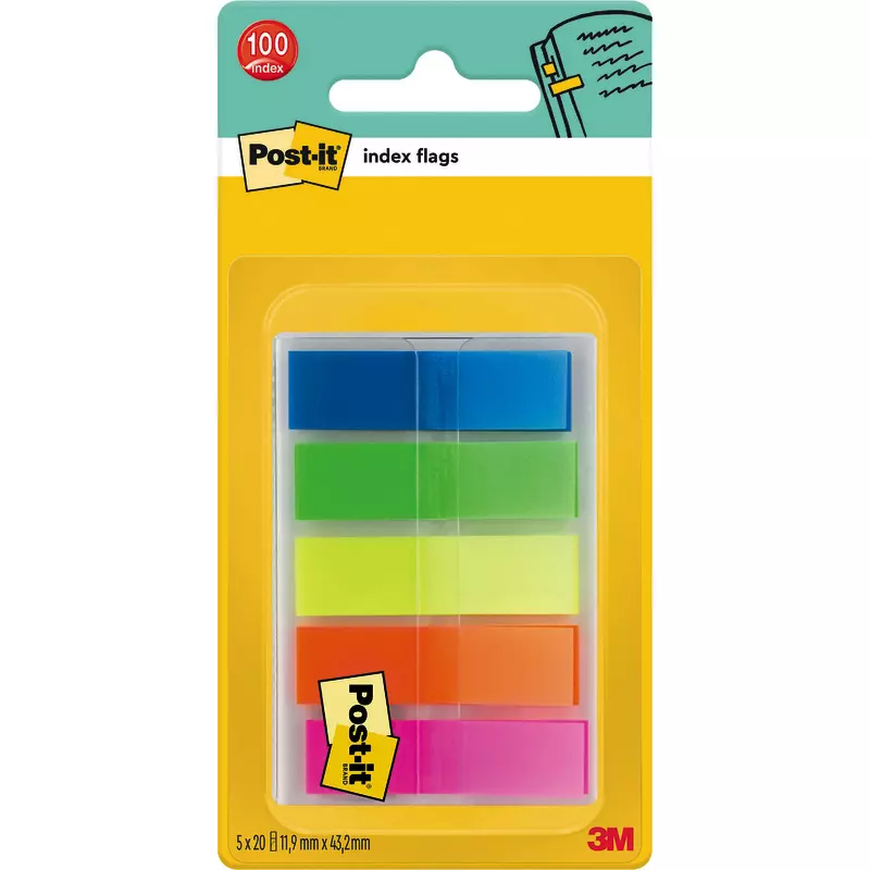 Produktinformationen "Post-it® Index Haftstreifen, Mini, Transluzente Farben, 11.9 mm x 43.2 mm, 100 Haftstreifen/Spender"
