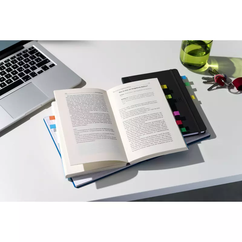 Nutze sie für den Index oder die farbliche Kennzeichnung deiner Arbeit, beim Abheften und um wichtige Passagen hervorzuheben – egal, ob zu Hause, bei der Arbeit oder im Klassenzimmer.