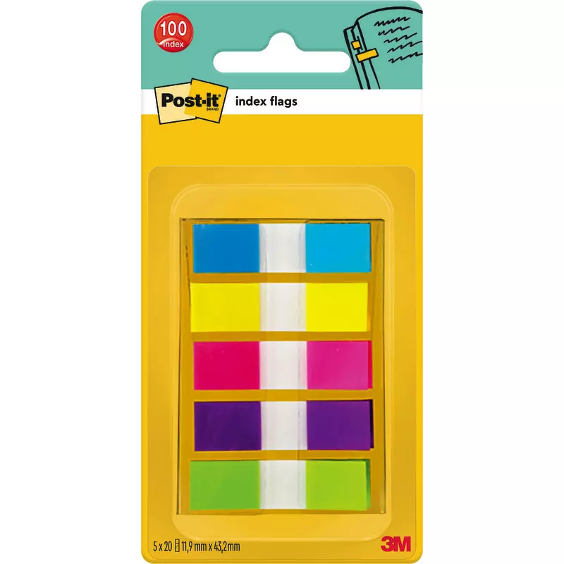 Produktinformationen "Post-it® Index Haftstreifen, Mini, Verschiedene Neonfarben, 11.9 mm x 43.2 mm, 100 Haftstreifen/Spender"