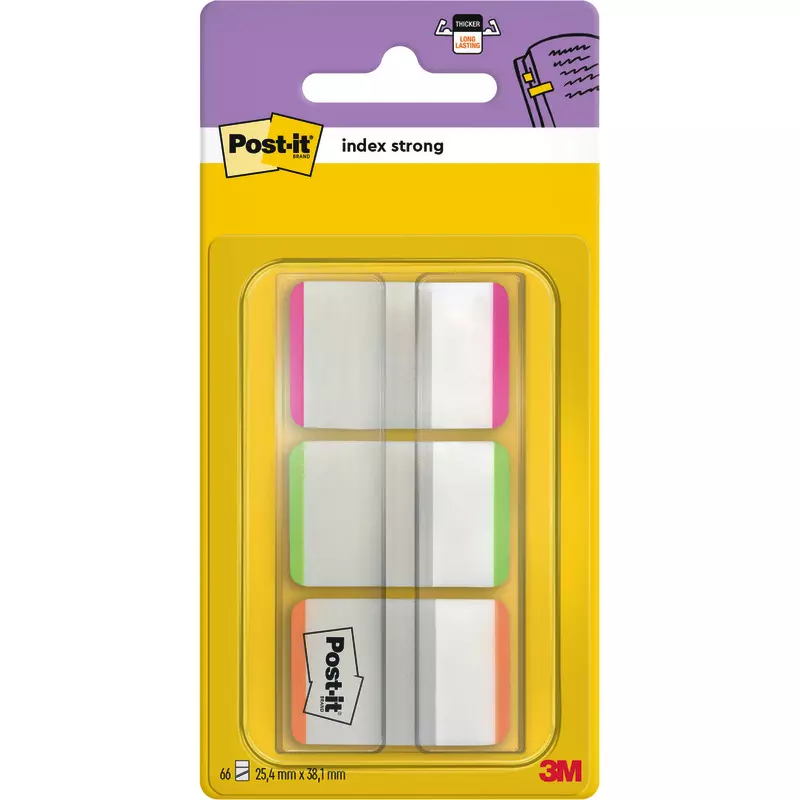Produktinformationen "Post-it® Index Strong Ablagetabs, Standard, Orange, Rosa und Grün, 25.4 mm x 38.1 mm, 66 Haftstreifen/Spender"
