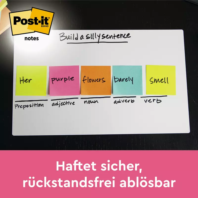 Diese Haftnotizen in leuchtenden und dynamischen Farben helfen Ihnen beim Organisieren Ihrer Arbeit. Du kannst die Farbe ganz nach Lust und Laune auswählen oder mehrere Farben gleichzeitig verwenden, um verschiedene Informationen zu sortieren und zu organisieren.